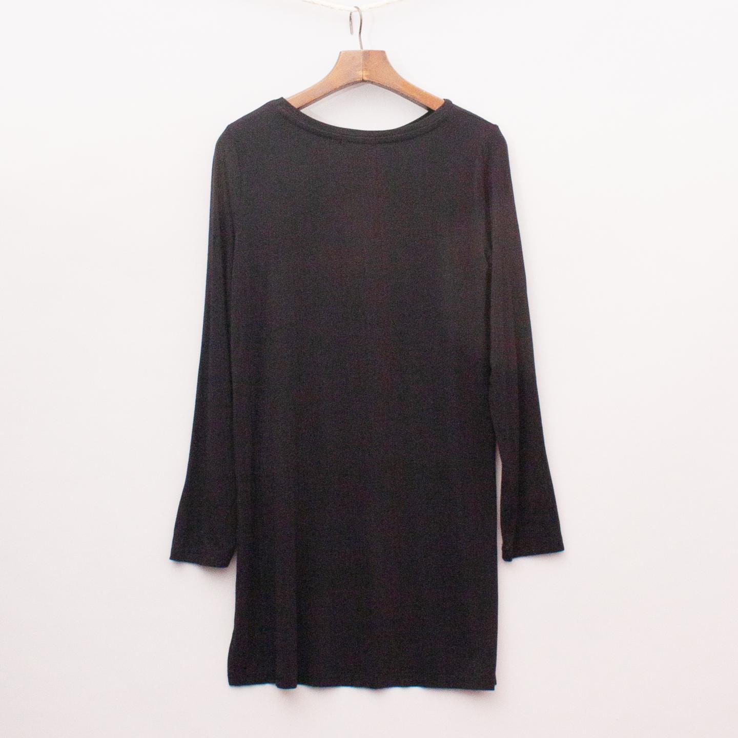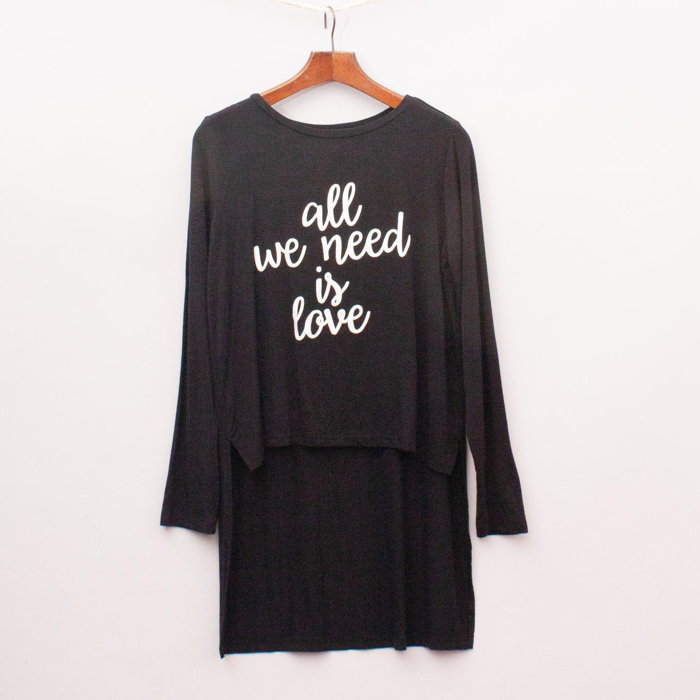 Urban Angel black long sleeve top with high/low hemline and metallic printed slogan on the front