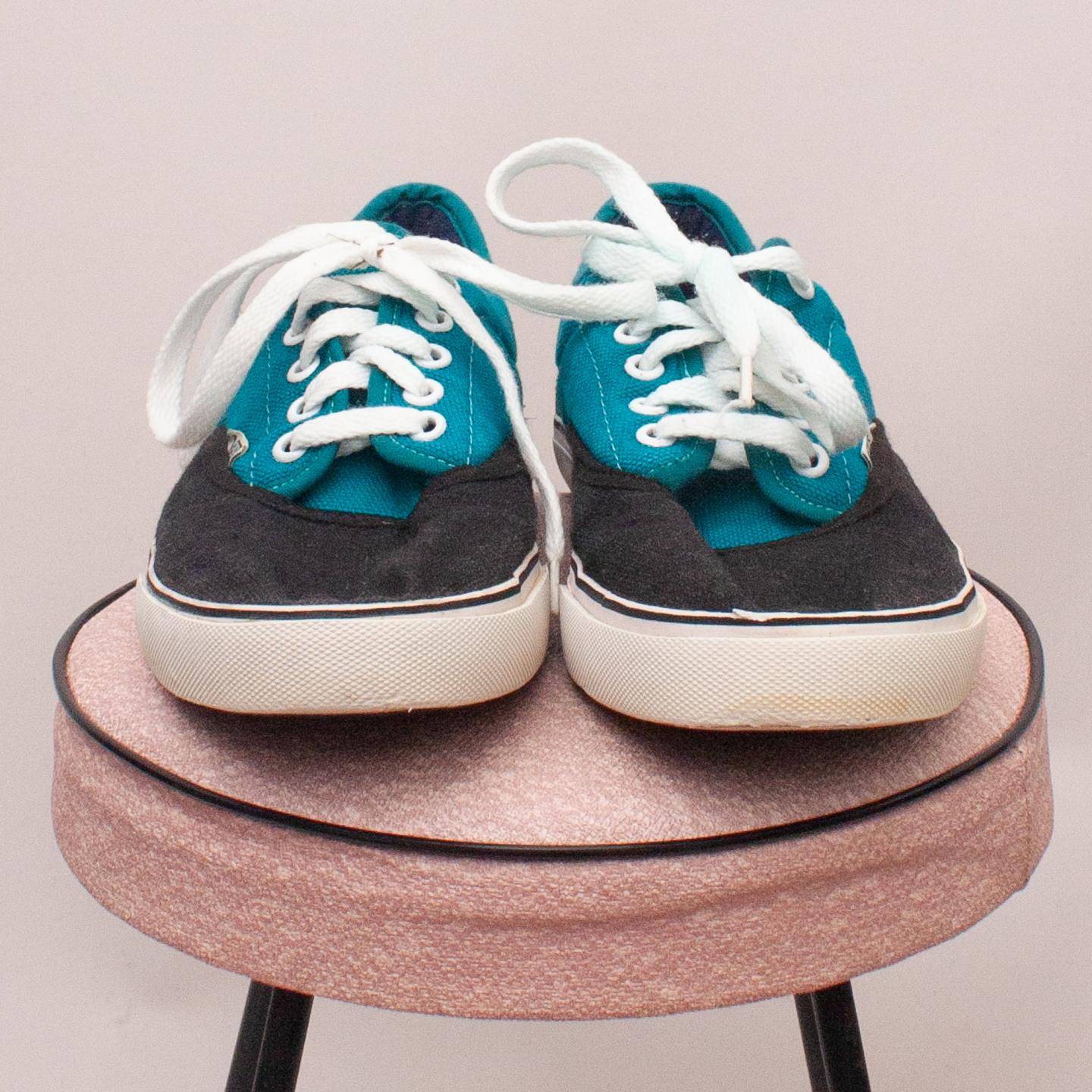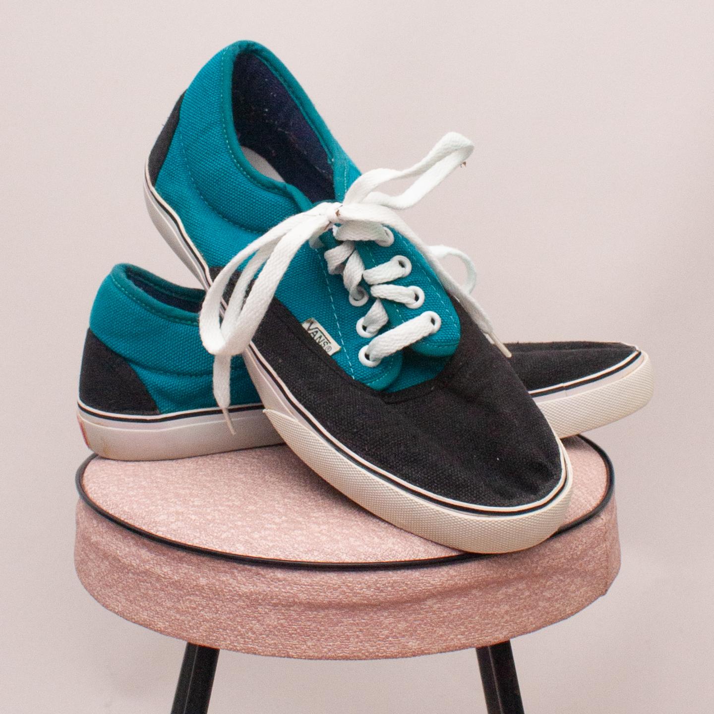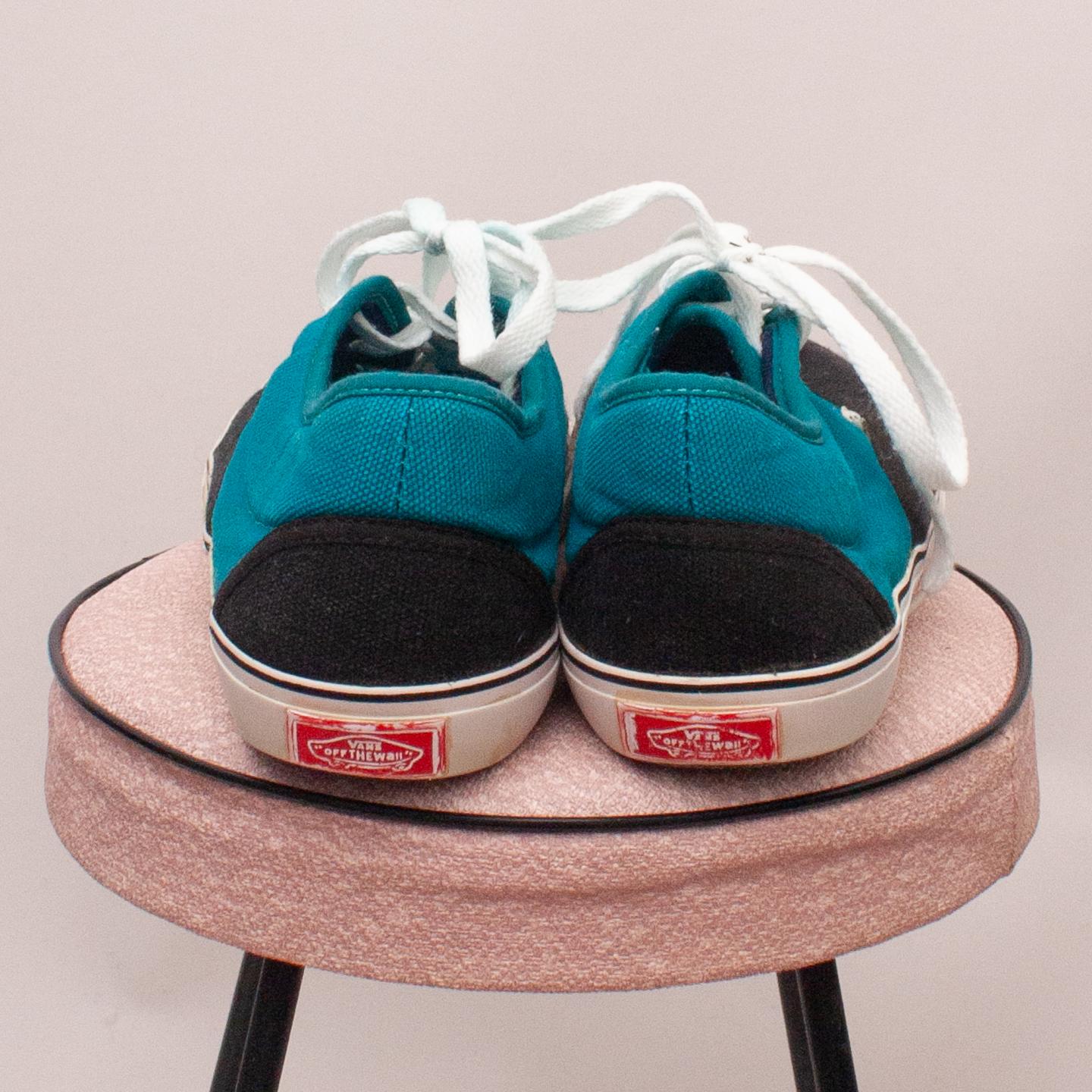 Van's black and teal lace up shoes with white laces and sturdy rubber soles - Size EU 37 (Age 8 approx.)