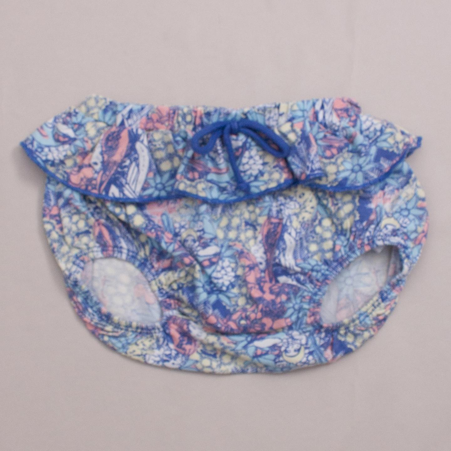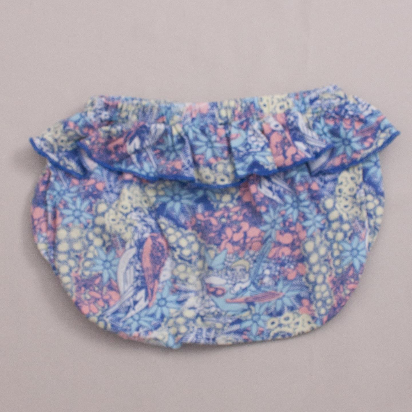 Walnut blue and wattle print bloomers with ruffle and elastic waistband *100% Cotton