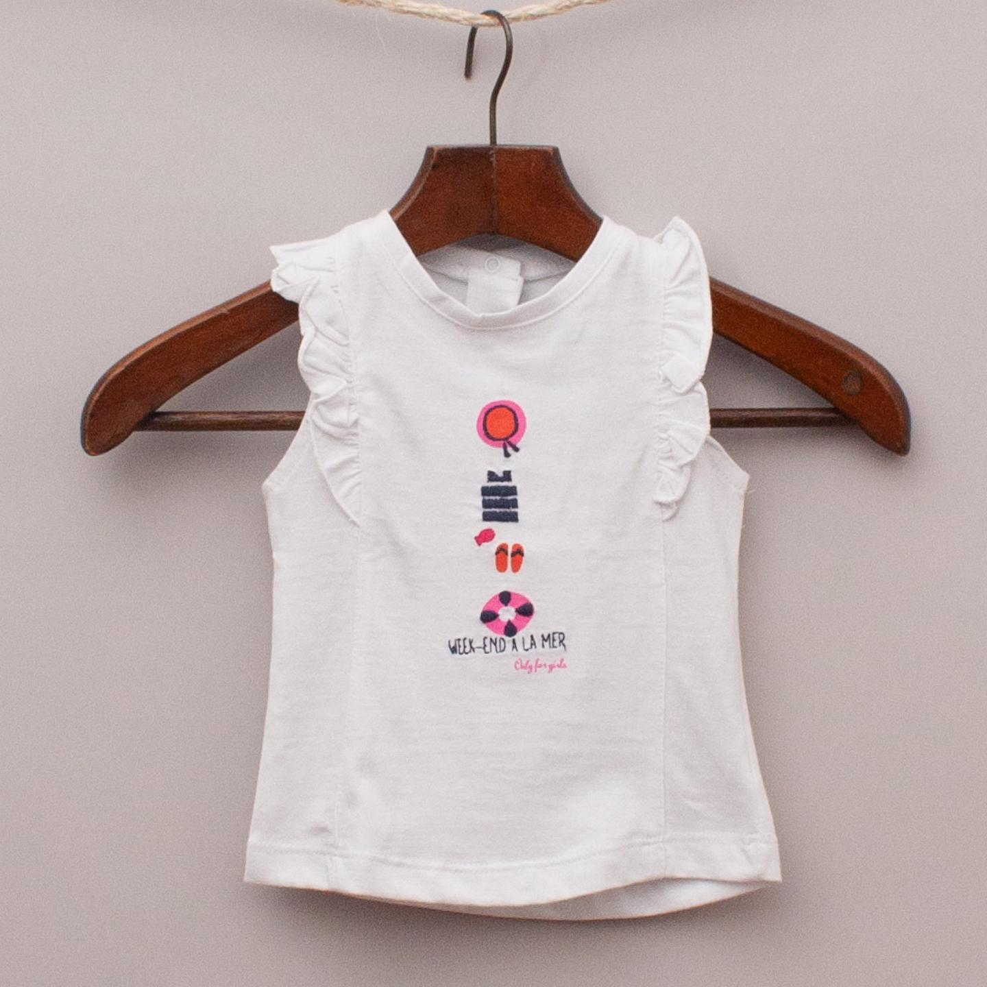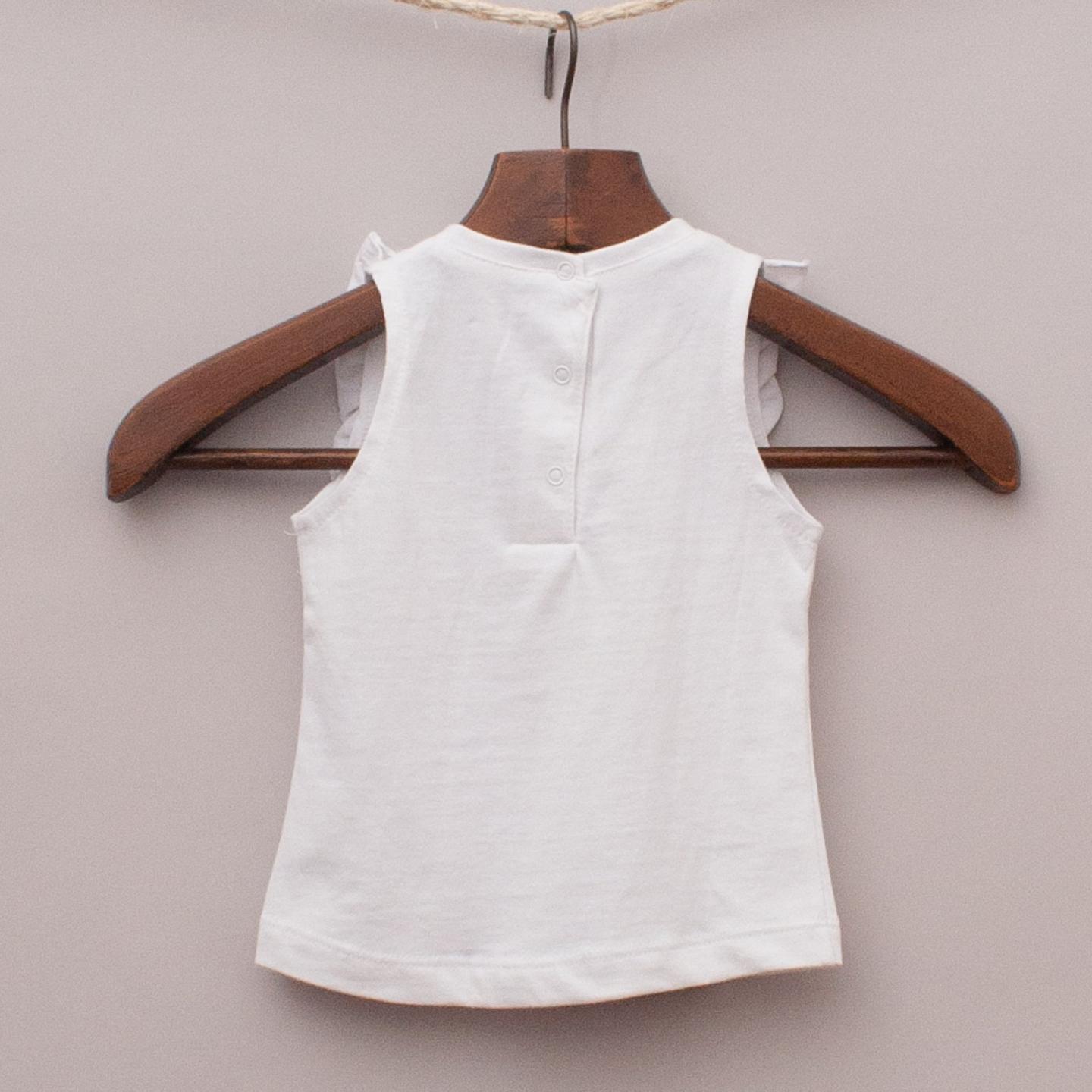 Week-End a la Mer "brand new with tags" white tank top with ruffle sleeves and embroidered detail on the front