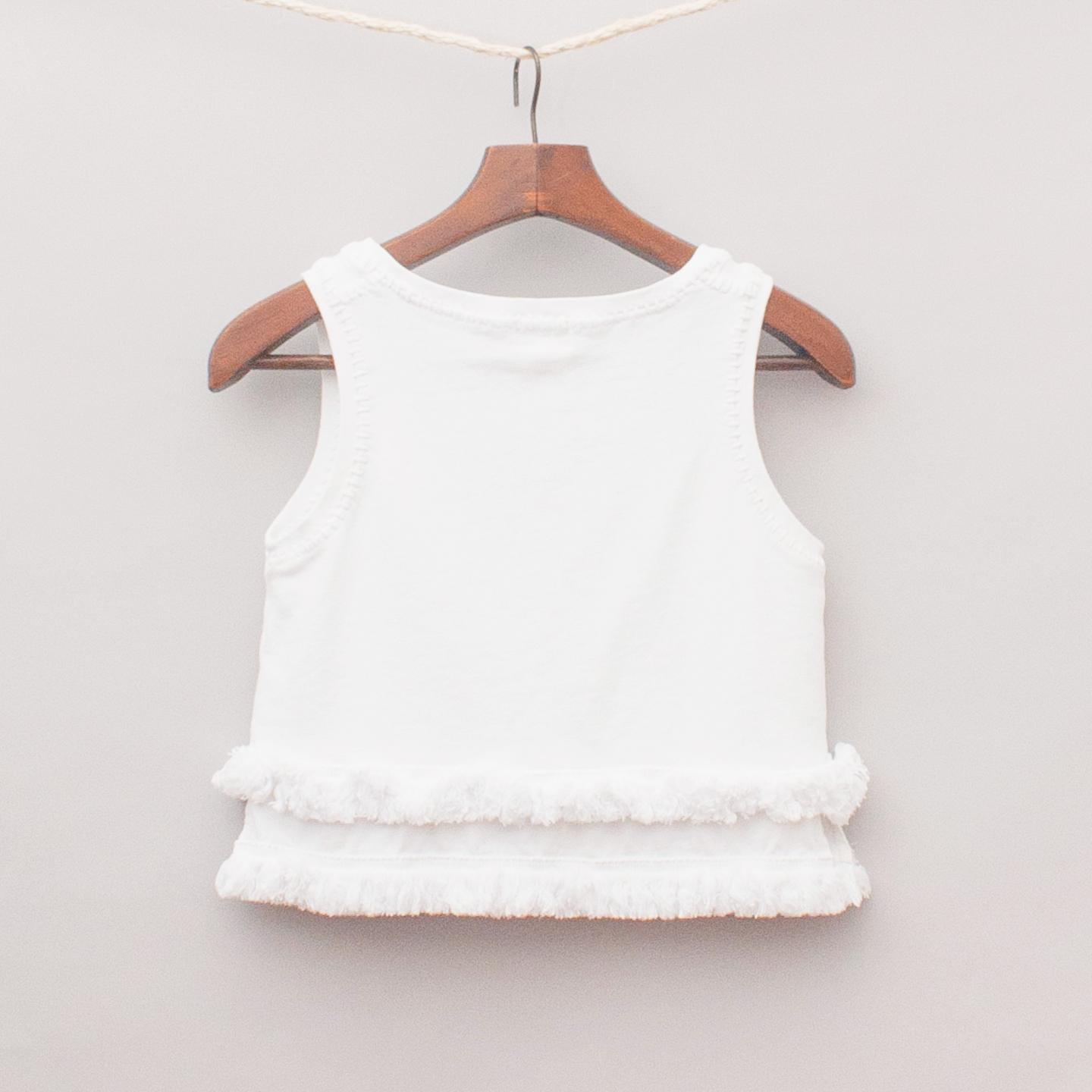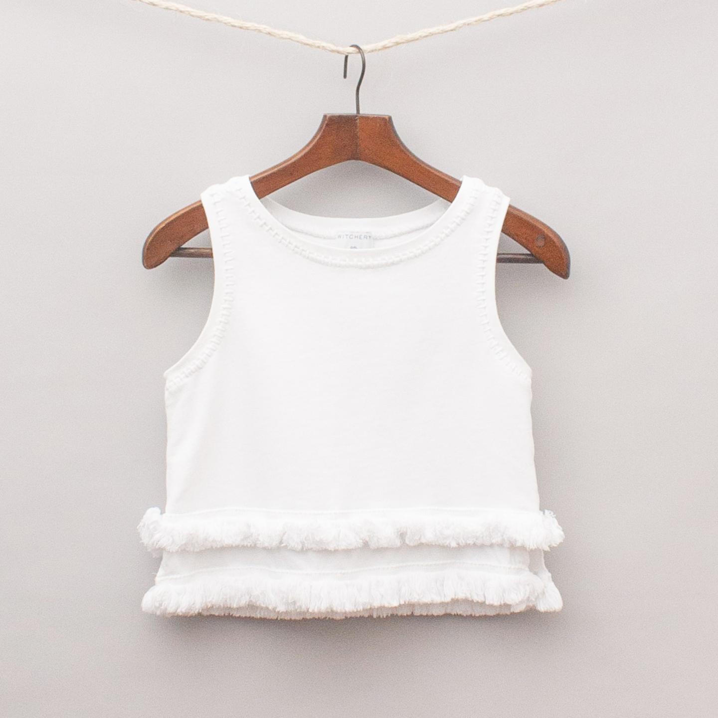 Witchery white cropped style top with cotton fringe and large stitch detail