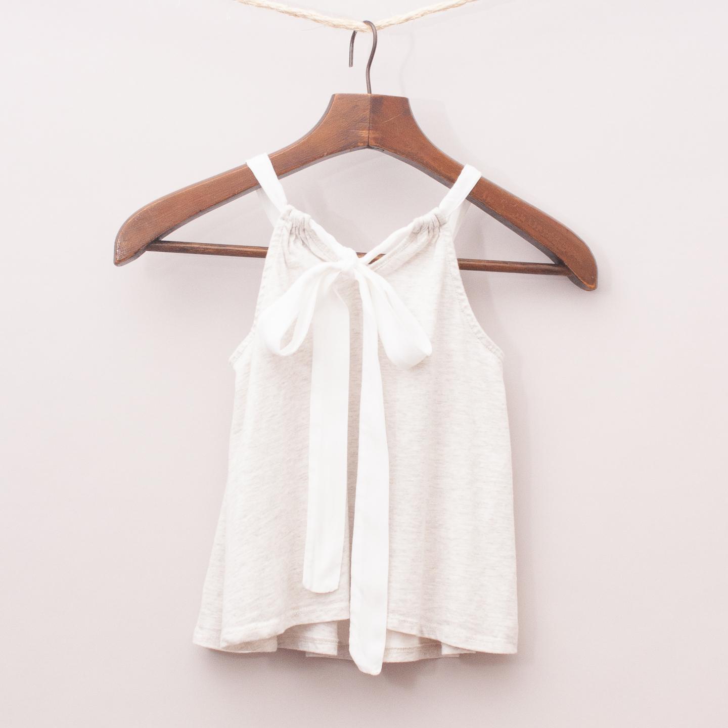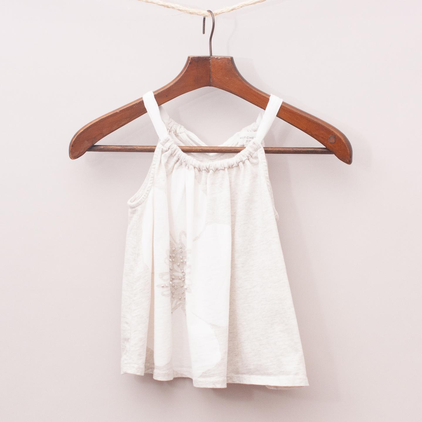 Witchery grey and white flower singlet with beaded detail, gathered neckline and tie back *100% Cotton