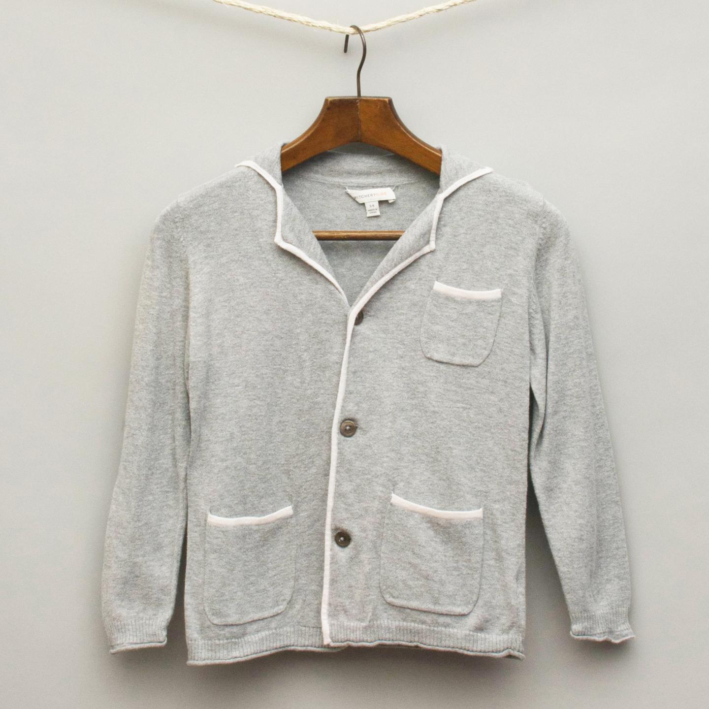 Witchery grey knitted cardigan with white piping detail, front pocket details and three button front