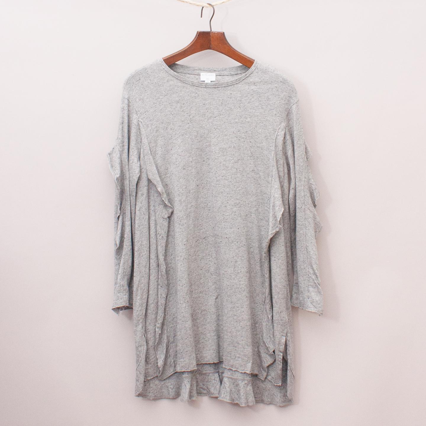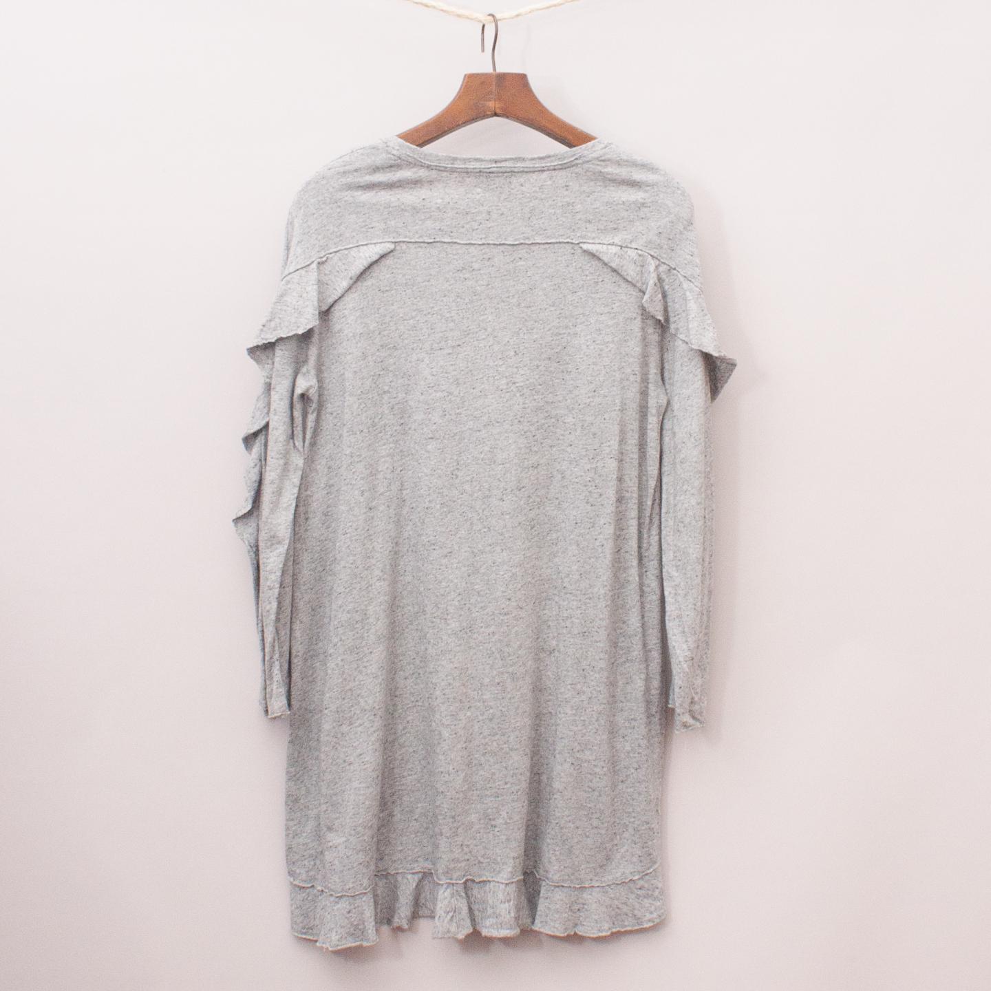 Witchery grey light weight long sleeve dress with ruffle details and raw edge trim *60% Cotton, 40% Modal