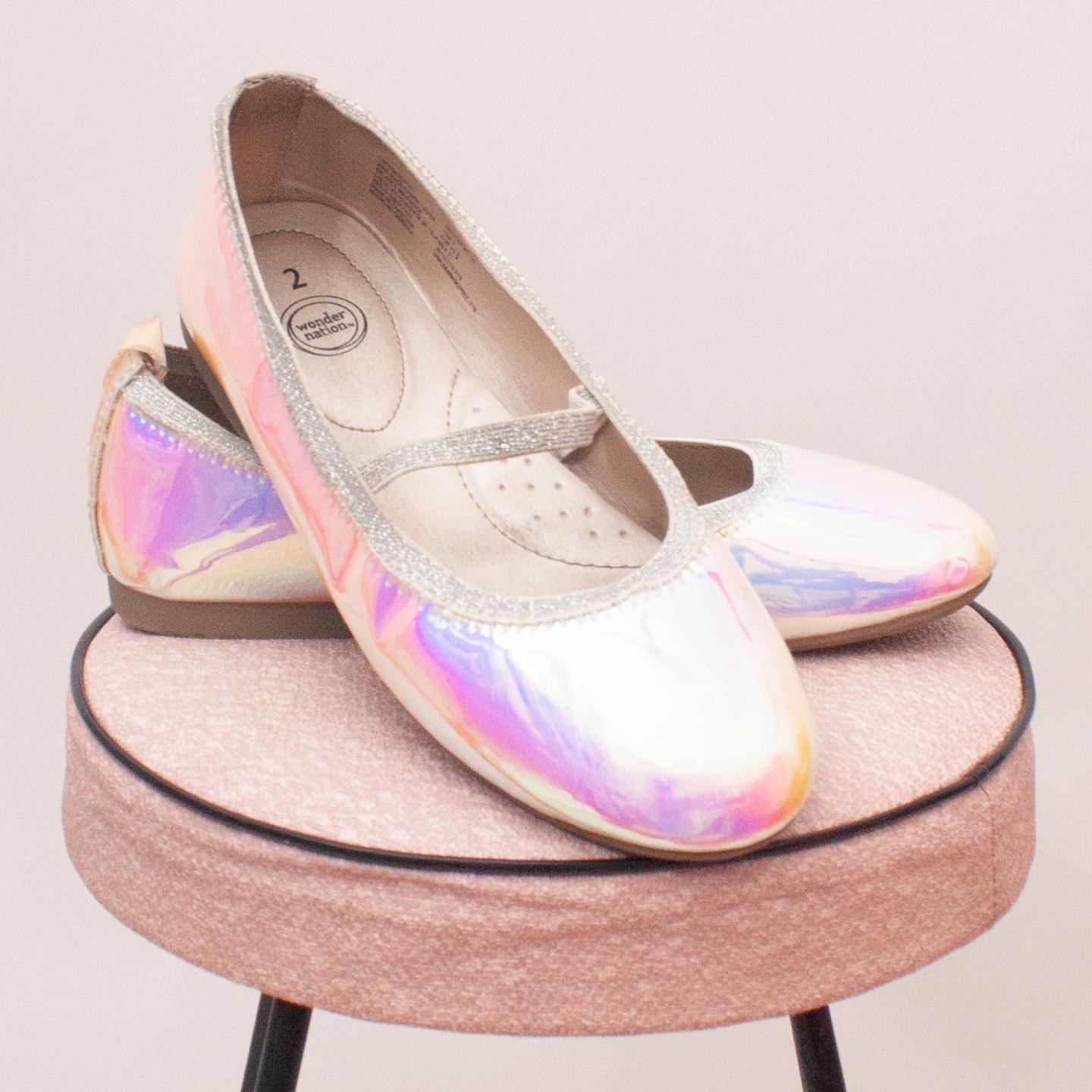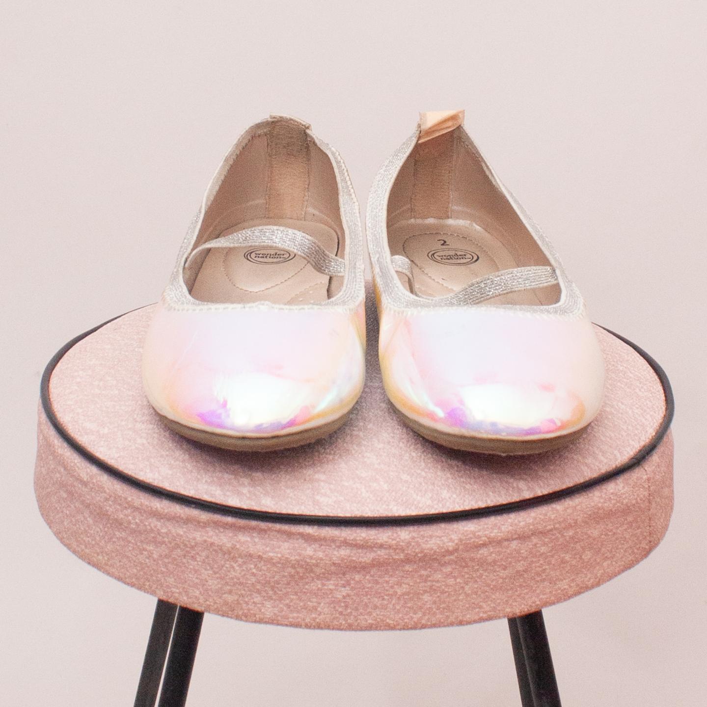 Wonder Nation pearl metallic slip on's elastic strap and rubber soles - Size EU 33.5 (Age 6 approx.)