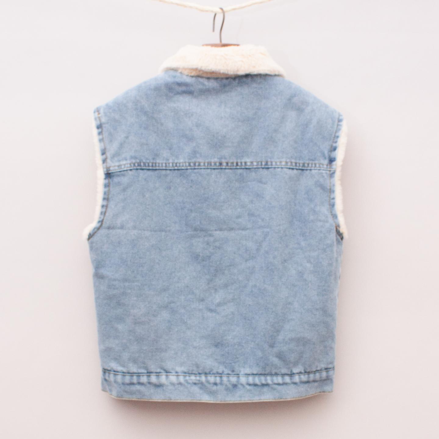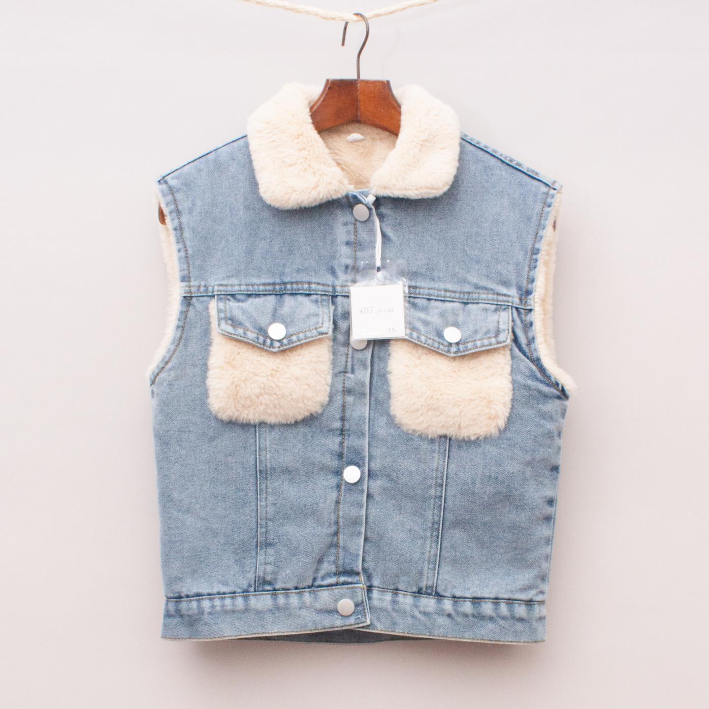 XDJ Kids "brand new with tags" light wash denim and faux fur vest with two front pockets and full button down front