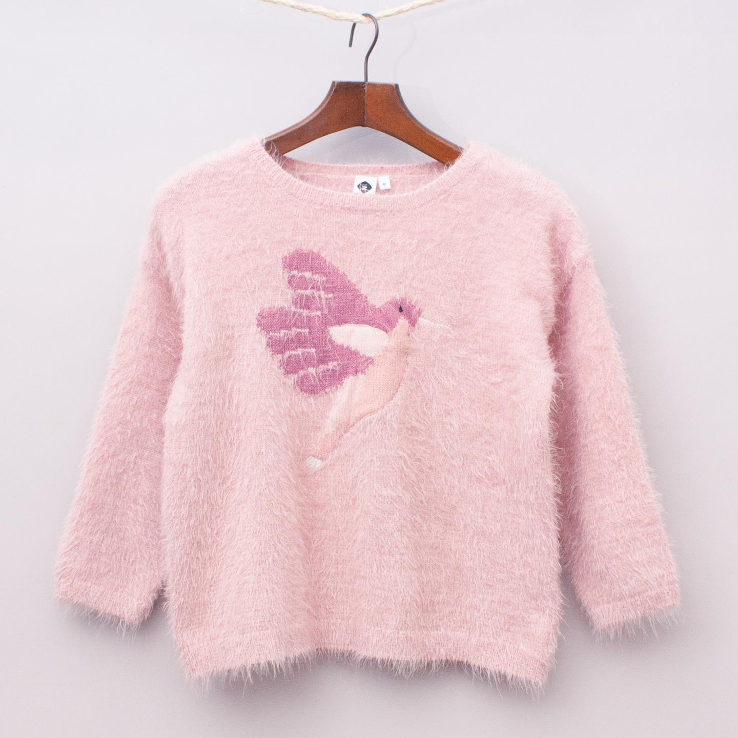 Z pink soft fuzzy jumper with embroidered hummingbird on the front *64% Polyamide, 35% Acrylic, 1% Metallic Fibre