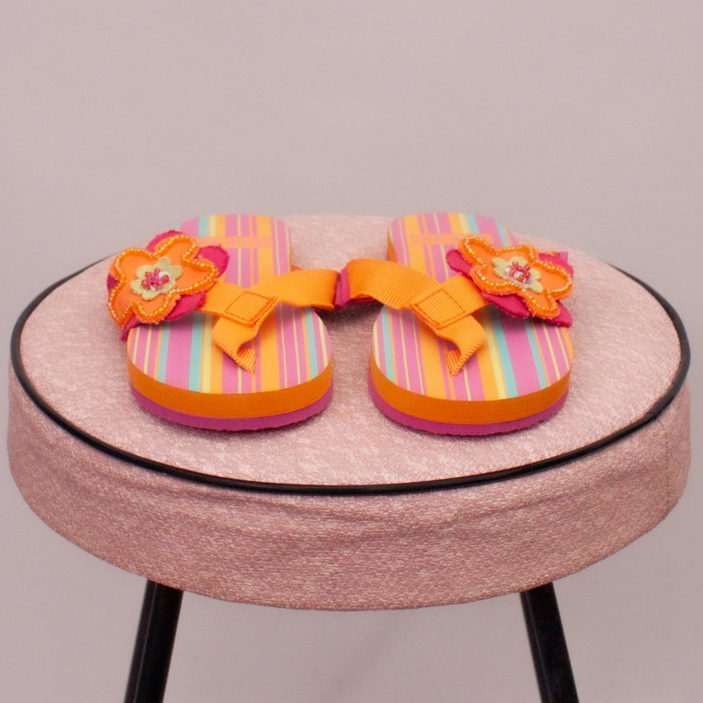 Za Girls "brand new" multi coloured striped thongs with embellished flower detail - Size EU 24 (1-2Yrs Approx.)