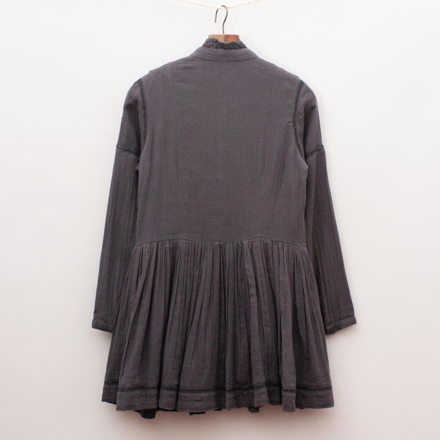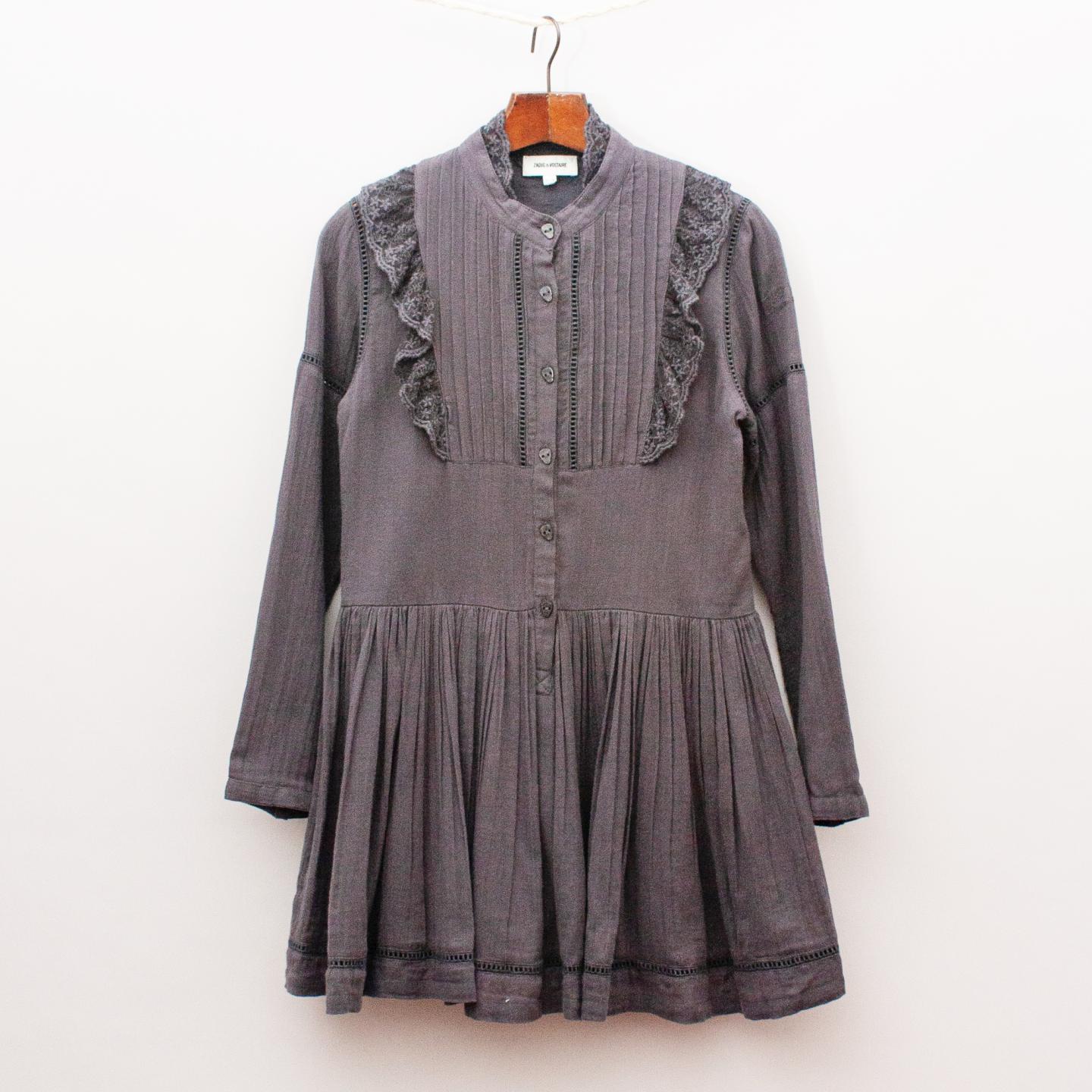 Zadig & Voltaire charcoal long sleeve dress with pleated skirt, lace ruffle detail and neckline with button down front *Worn once