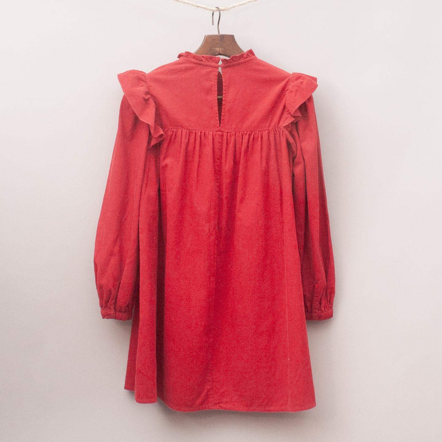 Zara red corduroy long sleeve dress with ruffle sleeves, pleats and detailed front *100% Cotton
