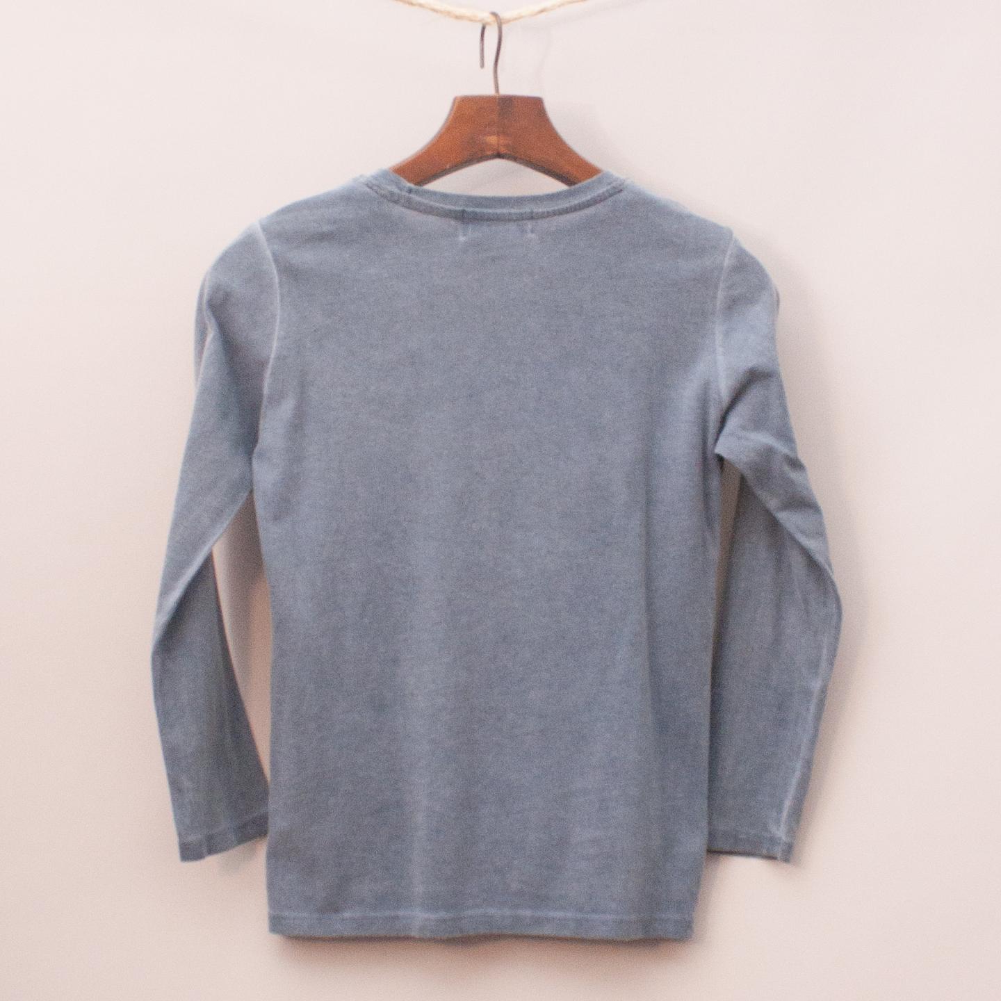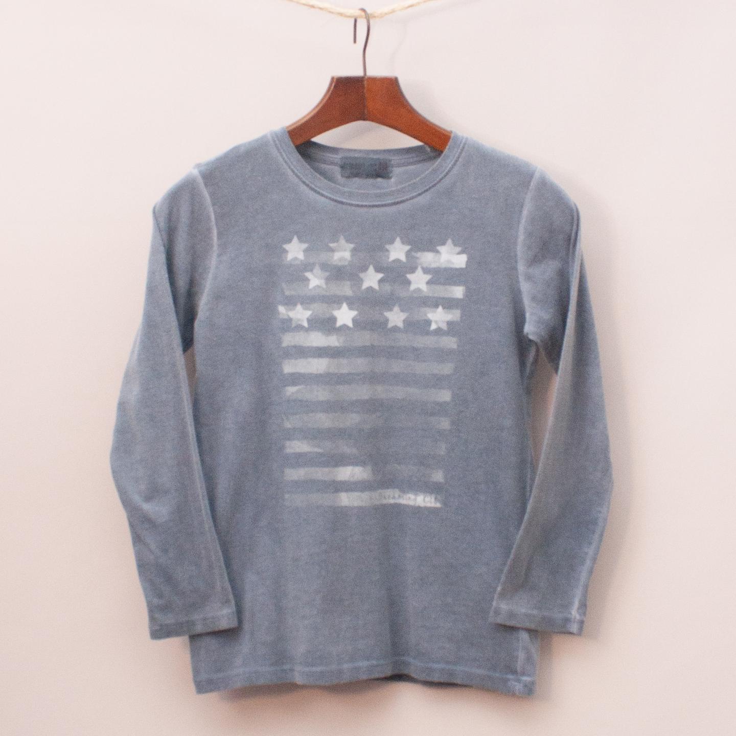 Zara grey long sleeve top with printed flag across the front *100% Cotton