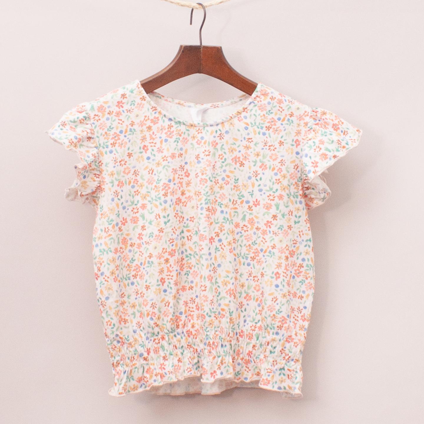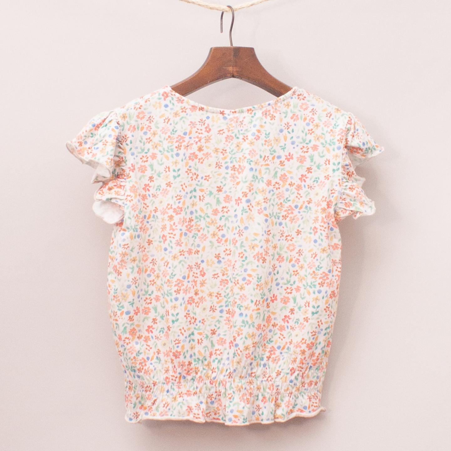 Zara cream and floral patterned top with elastic gathered waistband and ruffle sleeves