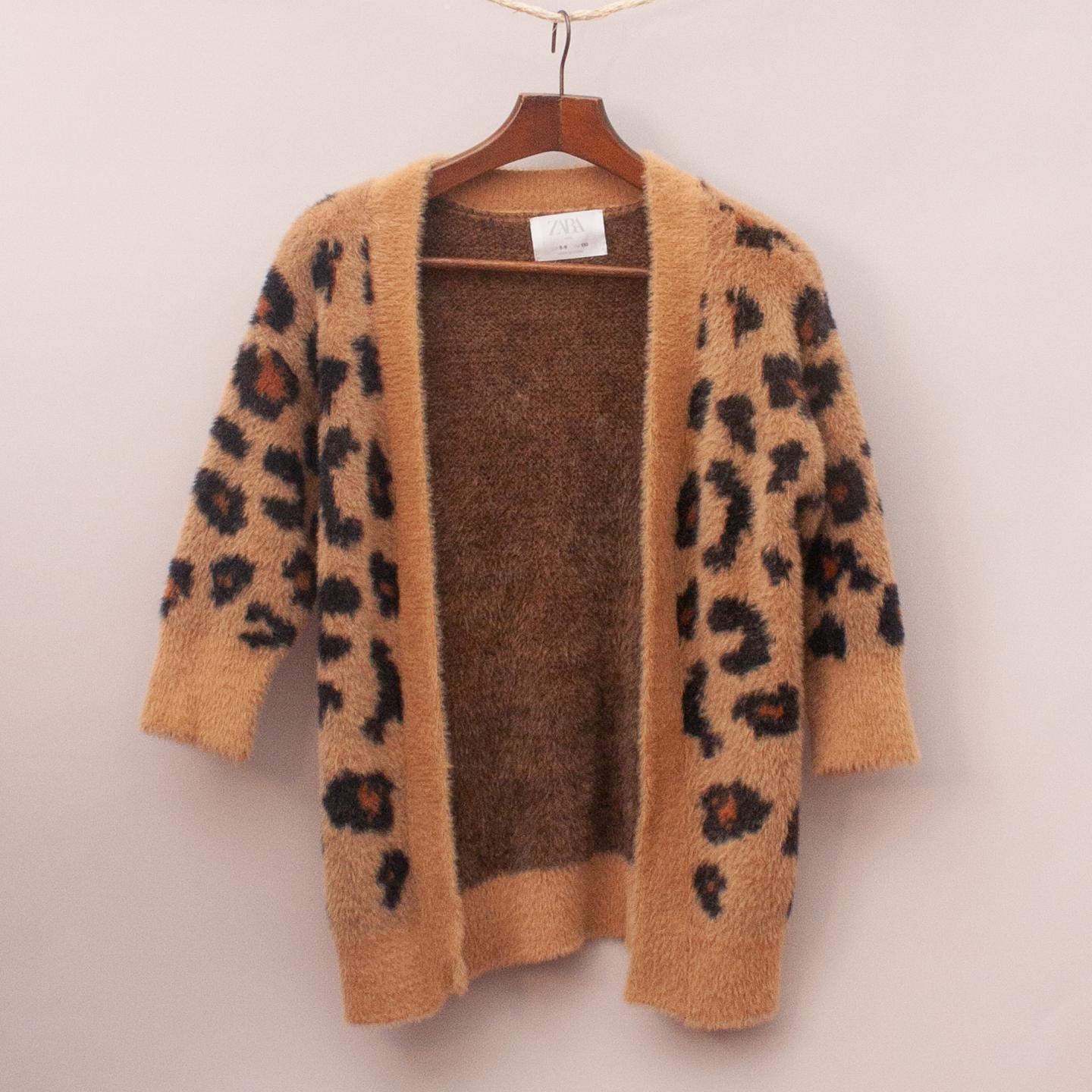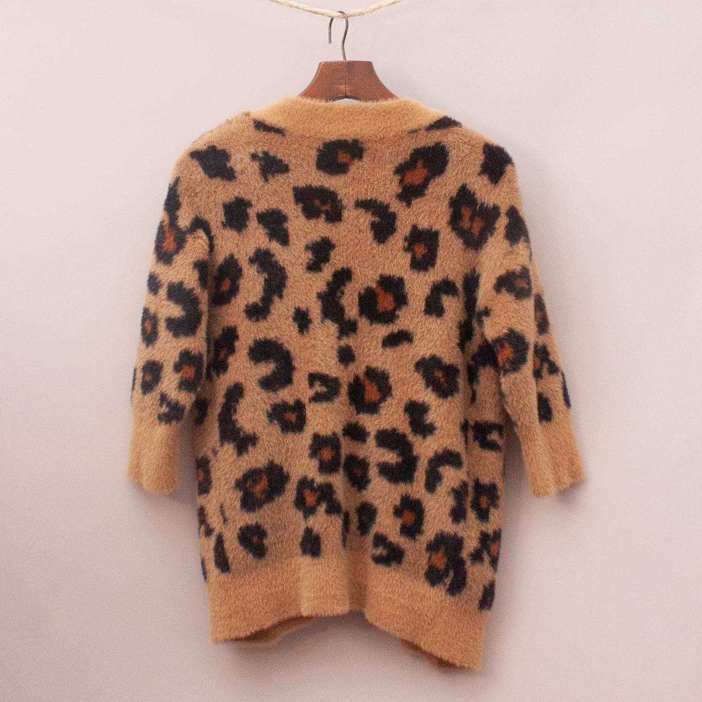 Zara brown and leopard patterned cardigan with soft fluffy fabric *100% Nylon