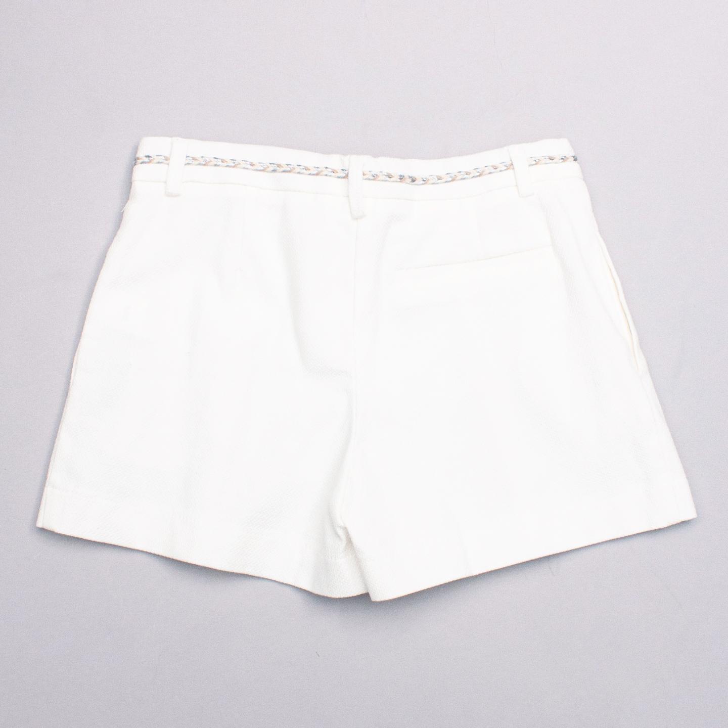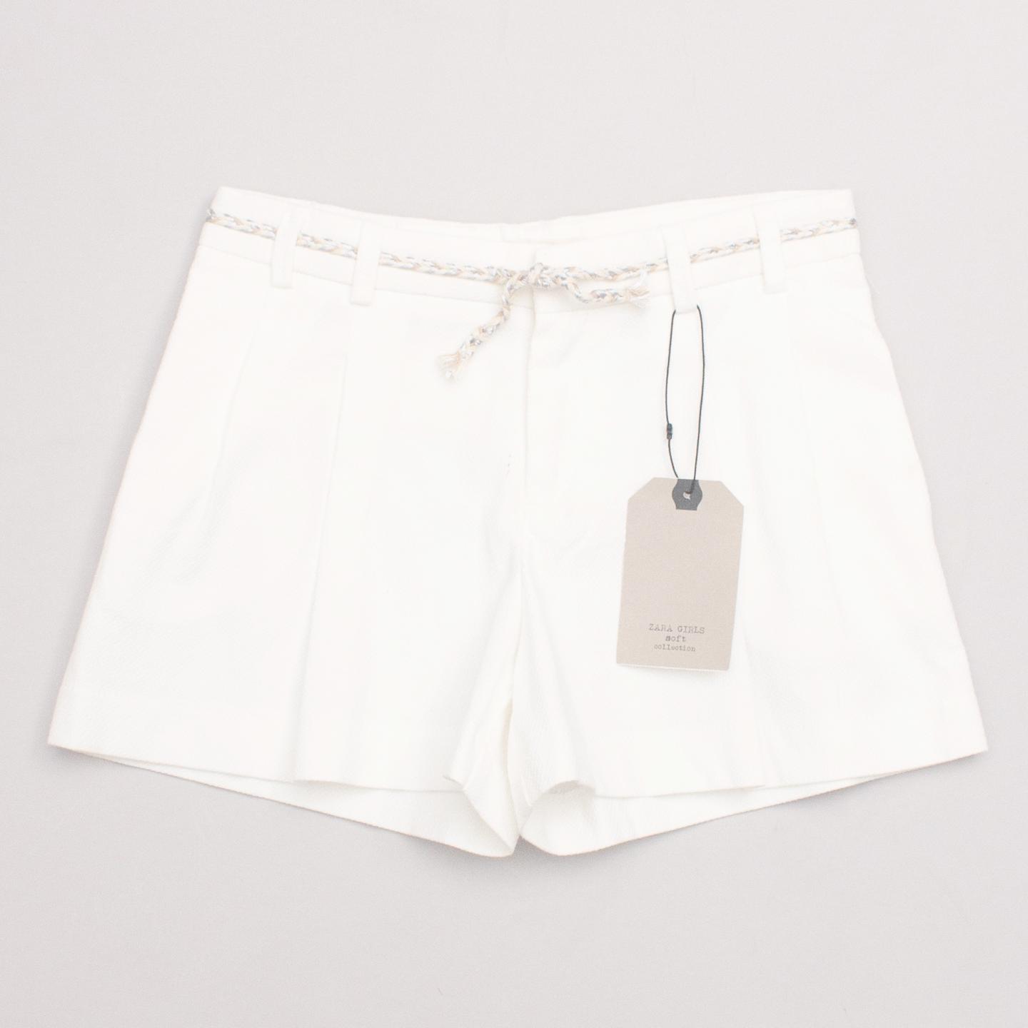 Zara "brand new with tags" white textured fabric pleated shorts with two side pockets, belt loops, plaited metallic belt with button/zip fastening