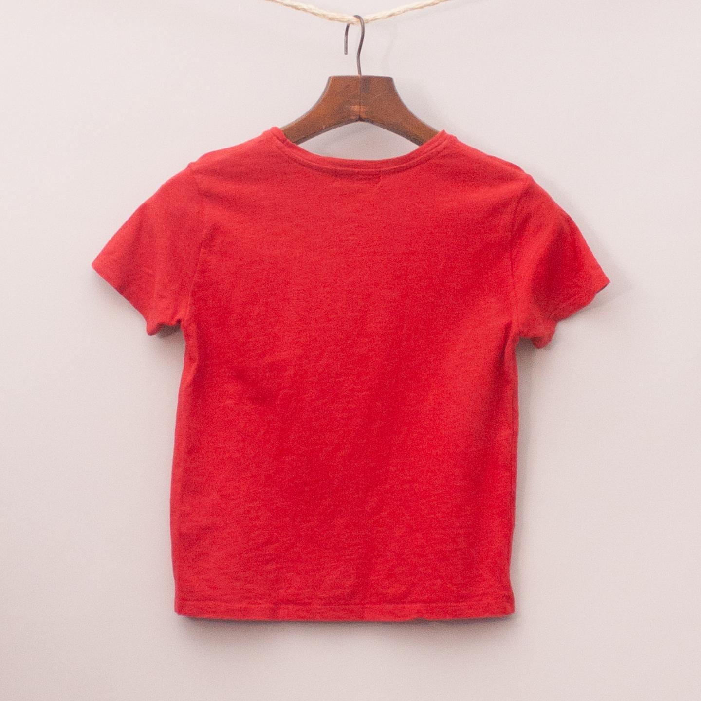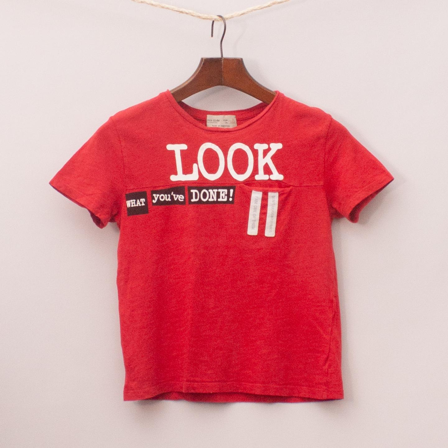 Zara red t-shirt with single front pocket and printed slogan across the front *100% Cotton