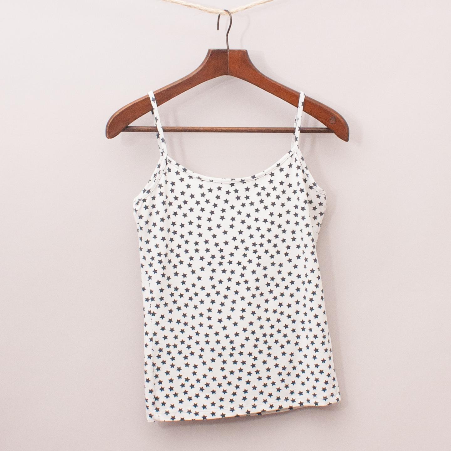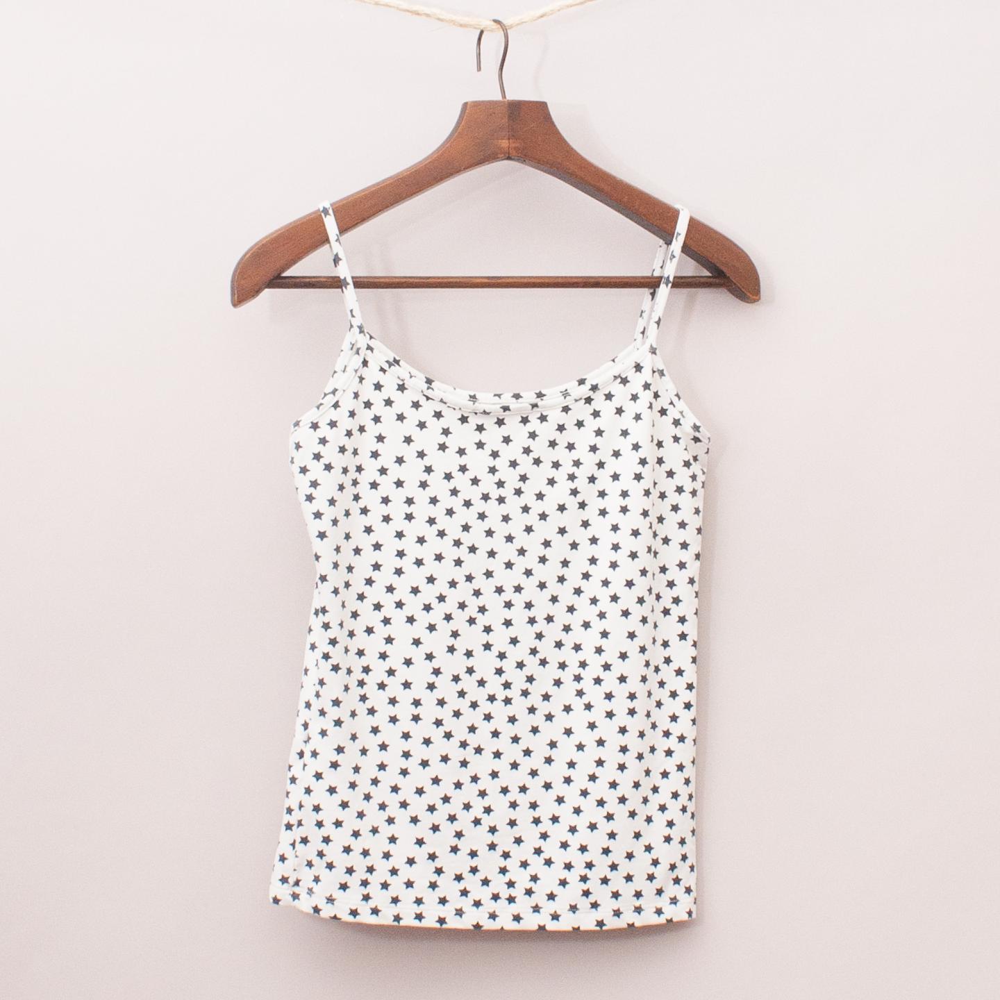 Zara white and navy blue star patterned, stretch fabric singlet *92% Polyamide, 8% Elastane
