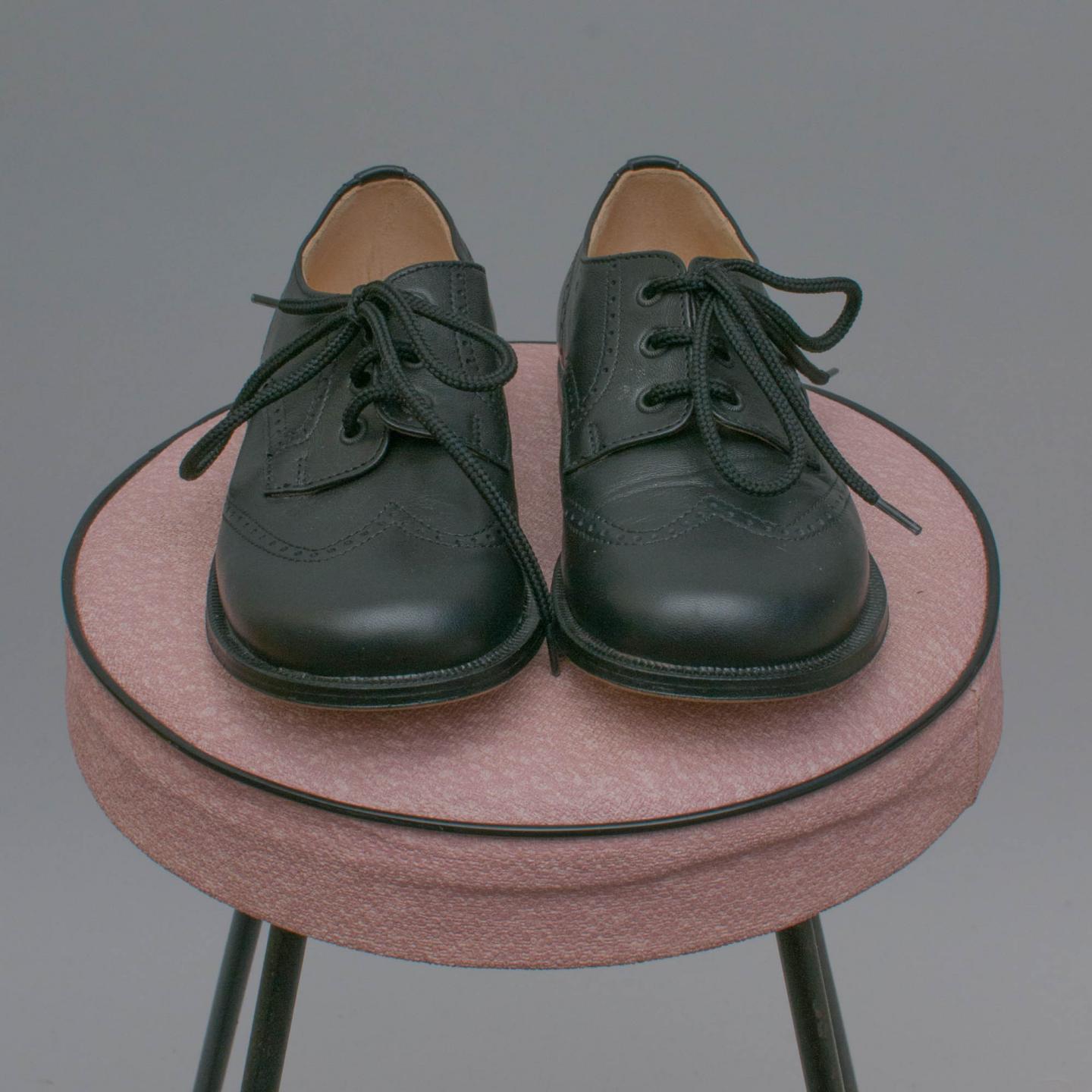 Zecchino D'oro in box, black brogue style leather dress shoes with lace up closure and sturdy soles (Age 5 Approx.)